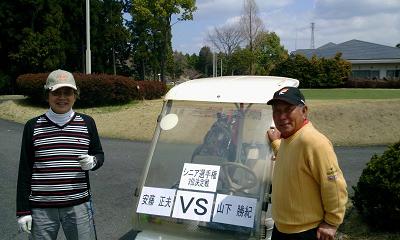 予選会の結果は、やはりハンディ通り、上野選手は7番ホールでのOB3発、山下選手は14番でのトラブルが影響したようです。来週か